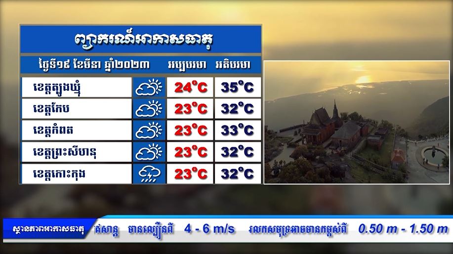 ព្យាករណ៍អាកាសធាតុ សម្រាប់ថ្ងៃទី១៩ មីនា ២០២៣ (មានវីដេអូ)