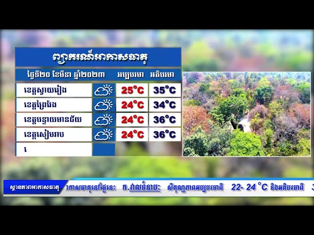 ព្យាករណ៍អាកាសធាតុ សម្រាប់ថ្ងៃទី១៩ មីនា ២០២៣ (មានវីដេអូ)