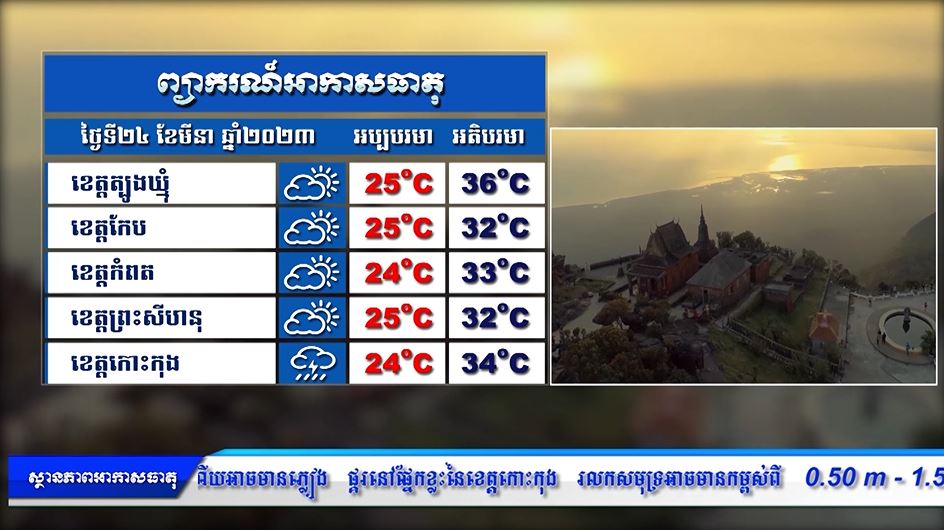 ព្យាករណ៍អាកាសធាតុ សម្រាប់ថ្ងៃទី២៤ មីនា ២០២៣ (មានវីដេអូ)