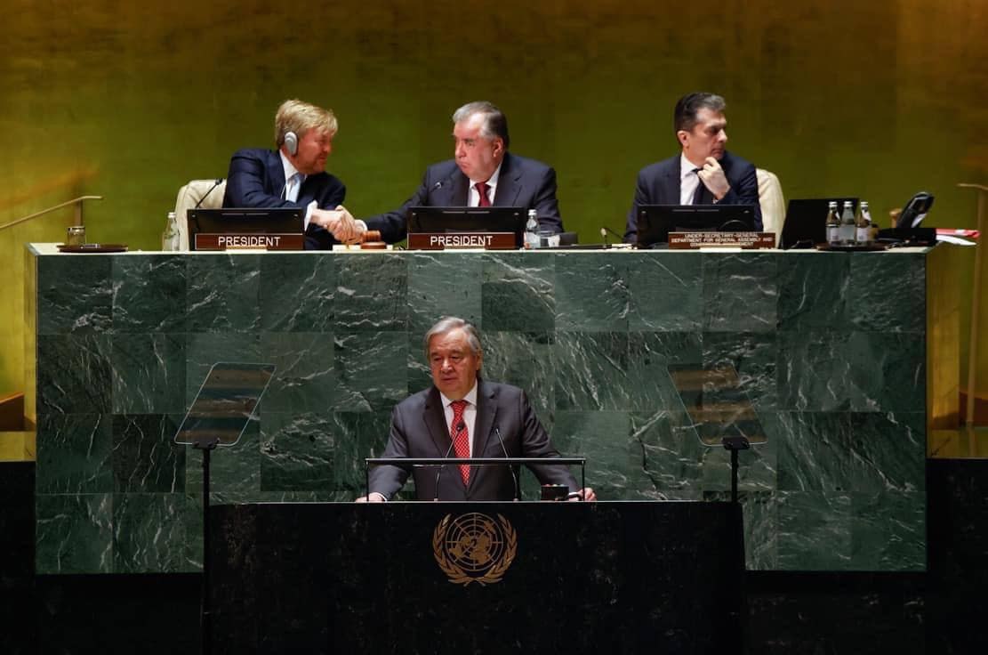 អគ្គលេខាធិការអង្គការសហប្រជាជាតិ (អ.ស.ប )លោក អាន់តូនីញ៉ូ ហ្គូទែរ៉េស (Antonio Guterres) បានថ្លែងនៅក្នុងសន្និសីទនោះ ដោយអំពាវនាវដល់គ្រប់ភាគីជាសមាសជិកទាំងអស់ឱ្យមានសកម្មភាពបន្ថែមទៀតពាក់ព័ន្ធទឹក ដើម្បីដោះស្រាយវិបត្តិទឹកជាសកល។លោកមានប្រសាសន៍ថា៖«សន្និសីទឆ្នាំនេះត្រូវតែតំណាងឱ្យការលោតផ្លោះនៅក្នុងសមត្ថភាពរបស់រដ្ឋសមាជិកនិងសហគមន៍អន្តរជាតិ ដើម្បីទទួលស្គាល់ និងធ្វើសកម្មភាពនានាដ៏មានសារៈសំខាន់នៃទឹកចំពោះនិរន្តភាពពិភពលោក»។