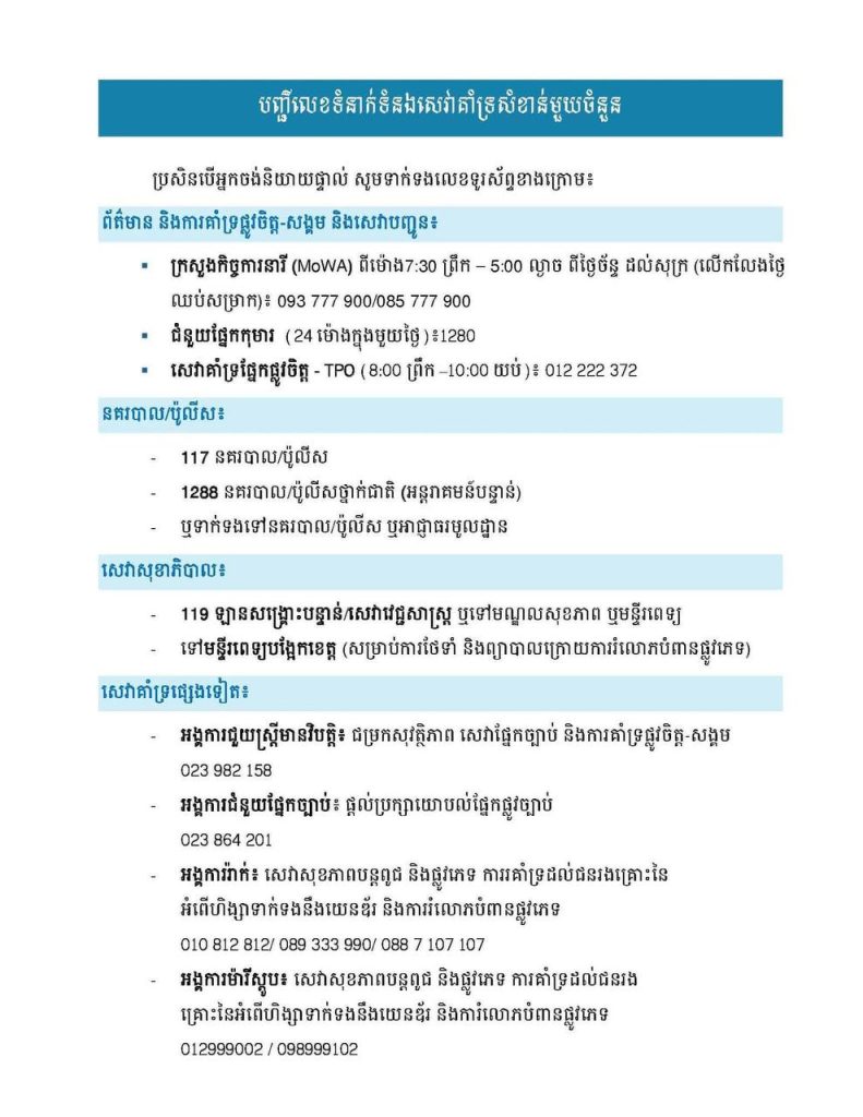 បញ្ជីលេខទំនាក់ទំនងសេវាគាំទ្រសំខាន់ៗOne-Minuteអត្ថបទដោយ៖AMS OneMinute #ams1minute AMS OneMinuteអត្ថបទមុនអត្ថបទបន្ទាប់