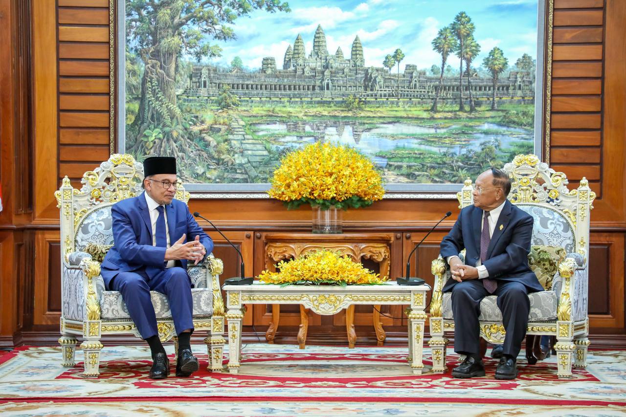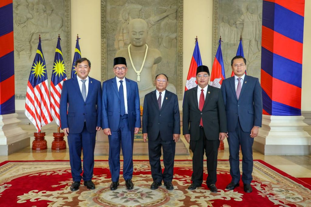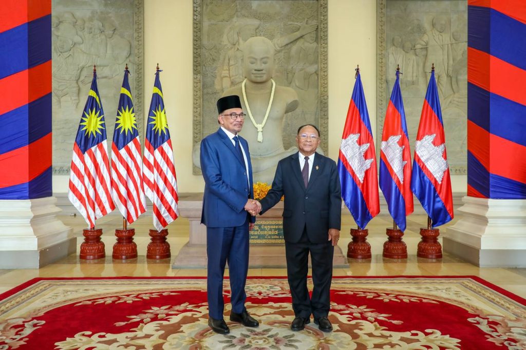 ភ្នំពេញ៖ សម្តេចអគ្គមហាពញាចក្រី ហេង សំរិន ប្រធានរដ្ឋសភានៃកម្ពុជា បានទទួលជួបសវនាការជាមួយ ឯកឧត្តម ដាតុ ស៊េរី អាន់វ៉ា ប៊ីន អ៊ីប្រាហ៊ីម (Dato’ Seri Anwar bin Ibrahim) នាយករដ្ឋមន្ត្រី នៃប្រទេស ម៉ាឡេស៊ី នៅរសៀលថ្ងៃចន្ទ ទី២៧ ខែមីនា ឆ្នាំ២០២៣នេះ នៅវិមានរដ្ឋសភា ខណៈដែលឯកឧត្តមបានដឹកនាំគណៈប្រតិភូជាន់ខ្ពស់បំពេញទស្សនកិច្ចផ្លូវការមិត្តភាពនៅកម្ពុជា។