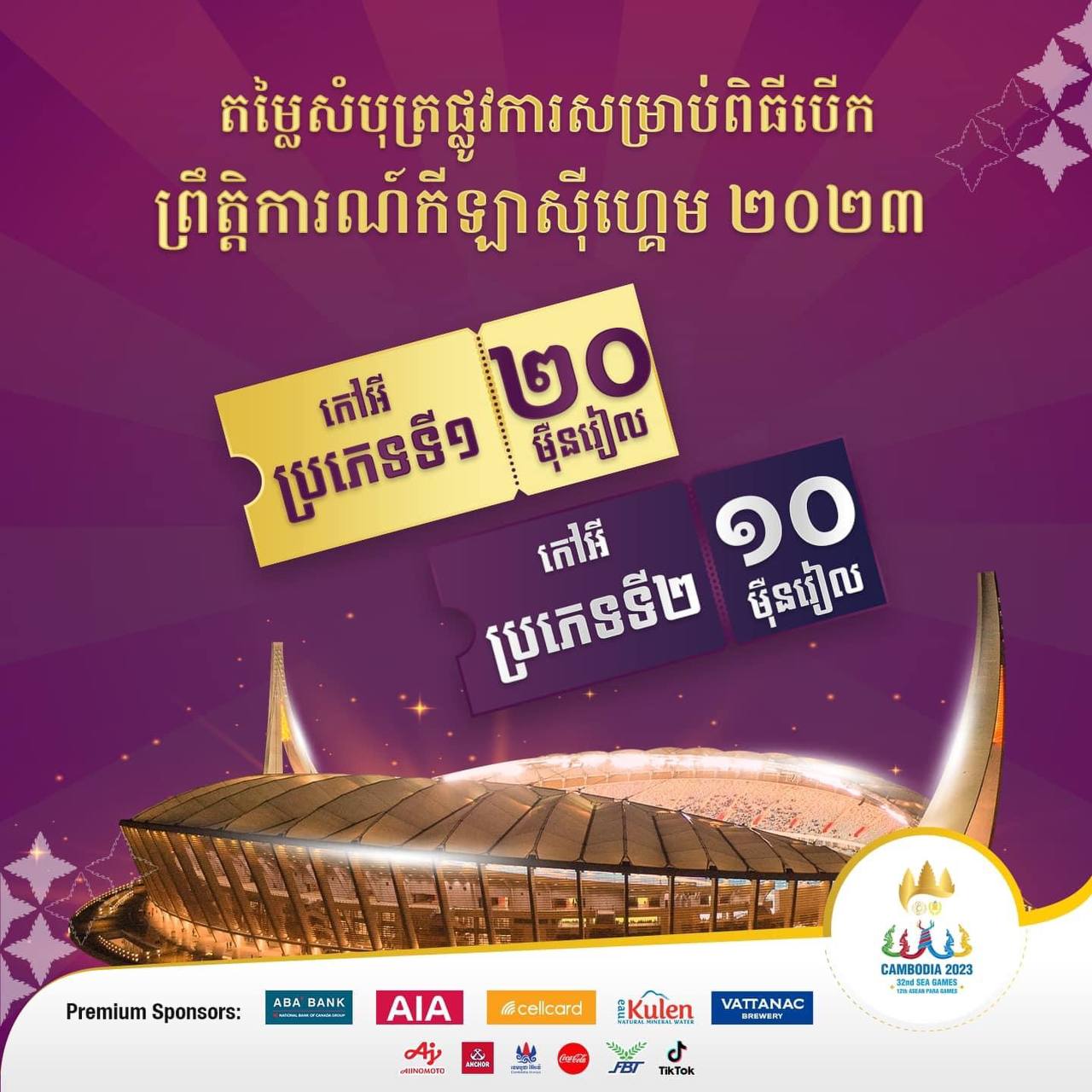 សំបុត្រសម្រាប់ចូលទស្សនាពិធីបើកការប្រកួតព្រឹត្តិការណ៍កីឡាស៊ីហ្គេម លើកទី៣២ ឆ្នាំ២០២៣ ចាប់ផ្ដើមដាក់លក់នៅលើប្រព័ន្ធអនឡាញជាផ្លូវការហើយ 👏🏼One-Minuteអត្ថបទដោយ៖AMS OneMinute #ams1minute AMS OneMinuteអត្ថបទមុនអត្ថបទបន្ទាប់