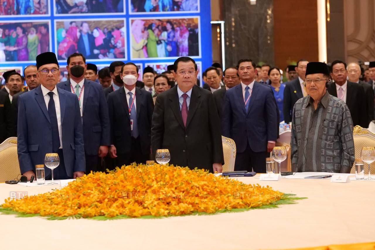 ភ្នំពេញ៖ នៅល្ងាចថ្ងៃទី២៧ ខែមីនា ឆ្នាំ២០២៣ សម្តេចអគ្គមហាសេនាបតី តេជោ ហ៊ុន សែន នាយករដ្ឋមន្ត្រី នៃព្រះរាជាណាចក្រកម្ពុជា និងឯកឧត្តម ដាតុ ស៊េរី អាន់វ៉ា ប៊ីន អ៊ីប្រាហ៊ីម នាយករដ្ឋមន្រ្តី នៃប្រទេសម៉ាឡេស៊ី អញ្ជើញចូលរួមក្នុងពិធីស្រាយបួសខែរ៉ាម៉ាឌន នៃសាសនាឥស្លាមកម្ពុជា នៅមជ្ឍមណ្ឌលជ្រោយចង្វារ OCIC រាជធានីភ្នំពេញ ដែលមាន សាសនិកឥស្លាមប្រមាណ ប្រាំមួយពាន់នាក់ ចូលរួម ។