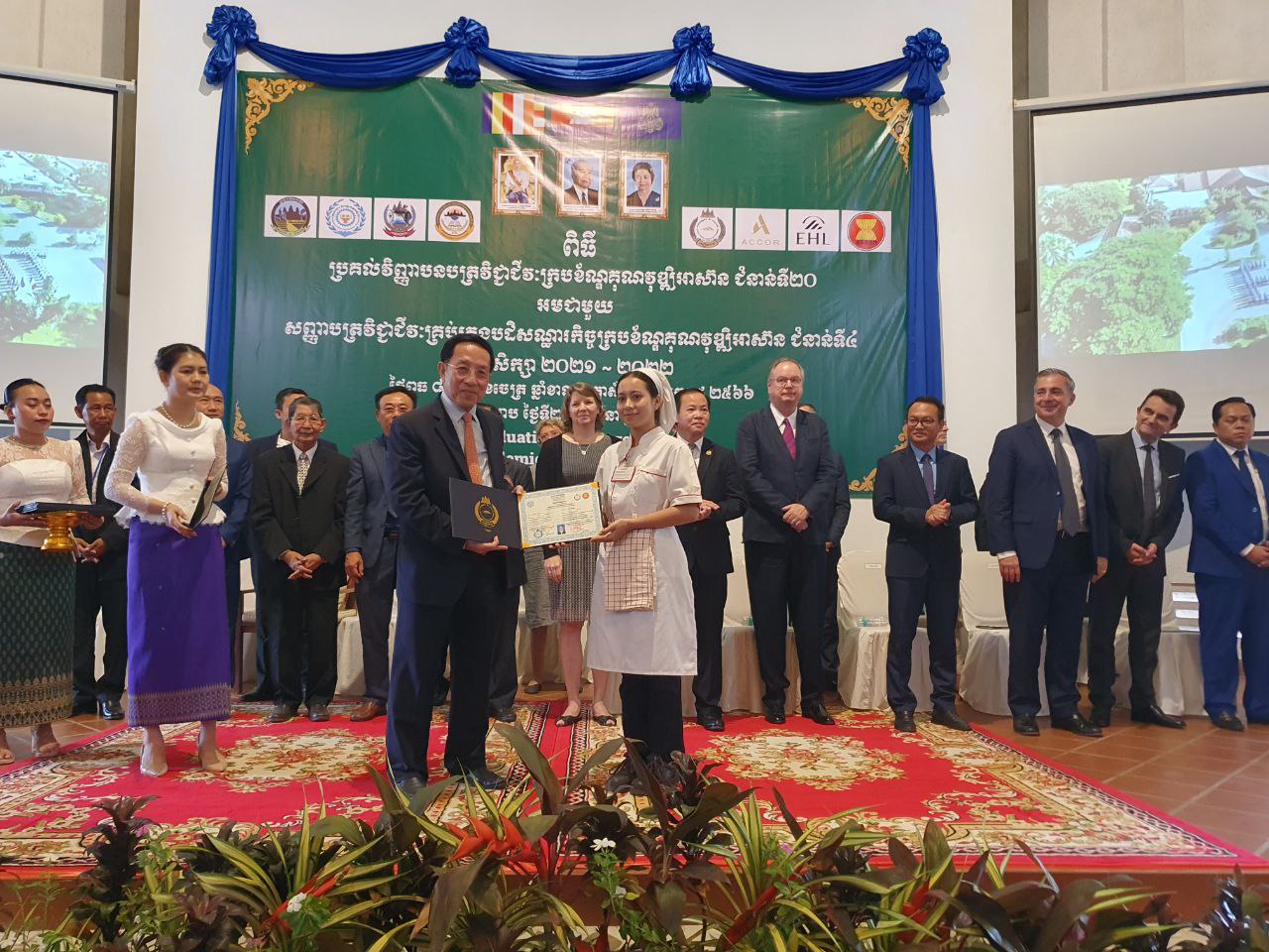 សូមបញ្ជាក់ថា សិស្សទទួលបានវិញ្ញាបនបត្រវិជ្ជាជីវៈ នាពេលនេះមានចំនួន ២០៧ ក្នុងនោះមាន ក្របខ័ណ្ឌគុណវុឌ្ឍិអាស៊ាន ចំនួន១៣៥នាក់ ផ្នែកថ្នាក់ត្រៀមបដិសណ្ឋារកិច្ចចំនួន២៦នាក់ ថ្នាក់សញ្ញាបត្រវិជ្ជាជីវៈ ផ្នែកគ្រប់គ្រងបដិសណ្ឋារកិច្ច មានចំនួន១៥នាក់ វិញ្ញាបនបត្របញ្ជាក់សមត្ថភាពជំនាញ បដិសណ្ឋារកិច្ចសេវាកម្មសណ្ឋាគារសម្រាប់ពលករទេសន្តរប្រវេសន៍ក្រោមជំនួយឧបត្ថម្ភរបស់អង្គការអន្តរជាតិទេសន្ត- ប្រវេសន៍(IOM) ចំនួន៣១នាក់ ។