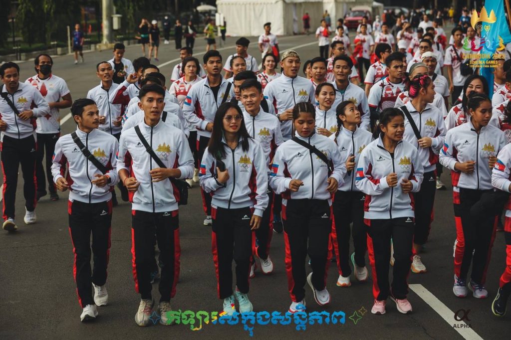 ពិធីដង្ហែនេះ បានធ្វើឡើងក្រោមវត្តមានឯកឧត្តម ហោ សារុន រដ្ឋលេខាធិការក្រសួងទេសចរណ៍ និងជាបេសកជនពិសេស តំណាង CAMSOC, ឯកឧត្តម អ៊ីវ ហ៊ាង ឯកអគ្គរាជទូតកម្ពុជា ប្រចាំប្រទេសឥណ្ឌូណេស៊ី, ឯកឯត្តមសាស្ត្រាចារ្យបណ្ឌិត Muhadjir Effendy រដ្ឋមន្ត្រីស្ដីទីក្រសួងយុវជន និងកីឡា និងជារដ្ឋមន្ត្រីសម្របសម្រួលសម្រាប់ការអភិវឌ្ឍន៍ធនធានមនុស្ស និងវប្បធម៌នៃសាធារណវរដ្ឋឥណ្ឌូណេស៊ី, លោក Raja Sapta Oktohari ប្រធានគណៈកម្មាធិការអូឡាំពិកឥណ្ឌូណេស៊ី (NPC) និងអង្គទូតនៃបណ្ដាប្រទេសអាស៊ានប្រចាំសាធារណៈរដ្ឋឥណ្ឌូណេស៊ី ព្រមទាំងអត្តលិក ។ ប្រភព Camsoc ចាន់ វិចិត្រ