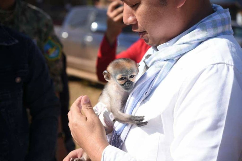 កូនស្វាកន្ទុយស ពីរក្បាលត្រូវបានជួយសង្គ្រោះ នៅខេត្តមណ្ឌលគិរី