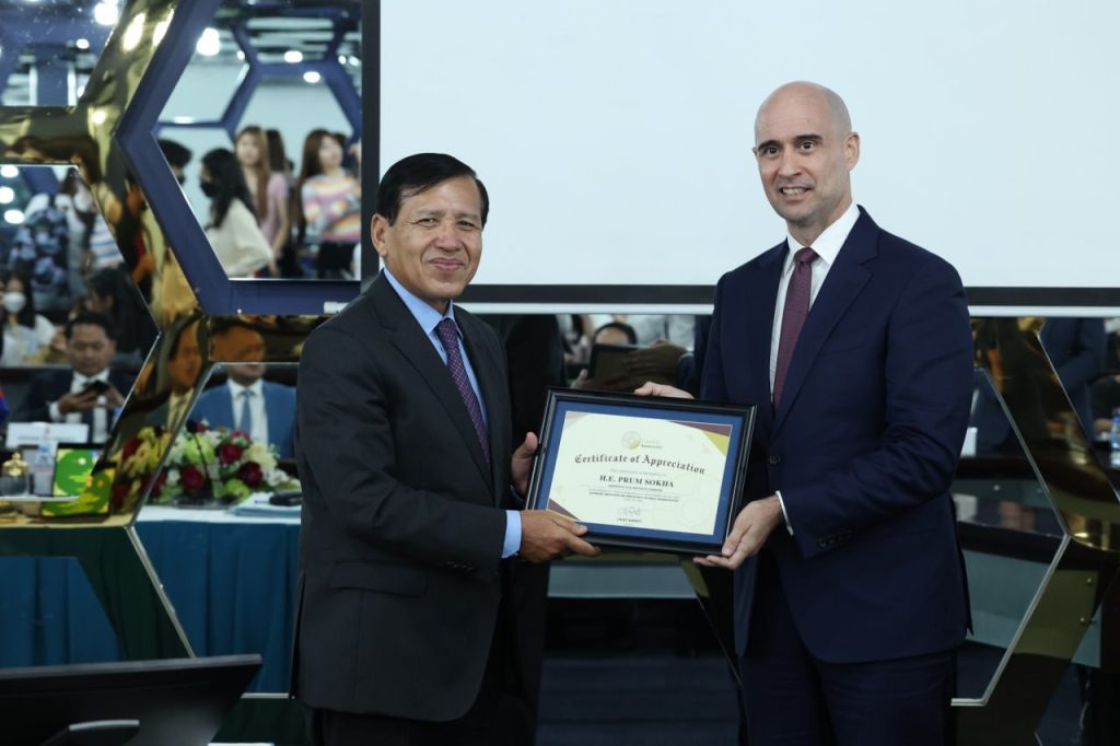 ភ្នំពេញ៖ ឯកឧត្តម ព្រុំ សុខា រដ្ឋមន្ត្រីក្រសួងមុខងារសាធារណៈ និង ជាប្រធានគណ:កម្មាធិការកែទម្រង់រដ្ឋបាលសាធារណៈ បានអញ្ជើញ ធ្វើបាឋកថា ស្ដីពី «ភាពជាអ្នកដឹកនាំ នវានុវត្តន៍ និងគុណាធិបតេយ្យ ក្នុងរដ្ឋបាលសាធារណៈ» ជូនដល់សាស្ត្រាចារ្យ និងនិស្សិតនៃ វិទ្យាស្ថាន ខេមអេដ (CamEd) នារសៀលថ្ងៃទី៧ ខែមេសា ឆ្នាំ២០២៣ នៅរាជធានីភ្នំពេញ។