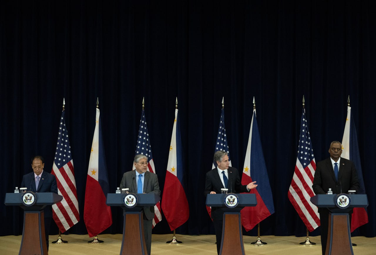 រដ្ឋមន្ត្រីការបរទេសអាមេរិក លោក អាន់ថូនី ប្លីងគែន និងរដ្ឋមន្ត្រីការពារជាតិអាមេរិក លោក ល្លយដ៍ អូស្ទីន បានជួបជាមួយរដ្ឋមន្ត្រីការបរទេសហ្វីលីពីន លោក អេនរីហ្គេ ម៉ាណាឡូ និងរដ្ឋមន្ត្រីការពារជាតិហ្វីលីពីន លោក ខាលីតូ ហ្គាវេស ក្នុងទីក្រុងវ៉ាស៊ីនតោន នៅថ្ងៃទី១១ ខែមេសានេះ ដើម្បីស្វែងយល់ពីអ្វីដែលពួកលោកអាចធ្វើបានបន្ថែមទៀត សំដៅពង្រឹងសន្តិសុខ។