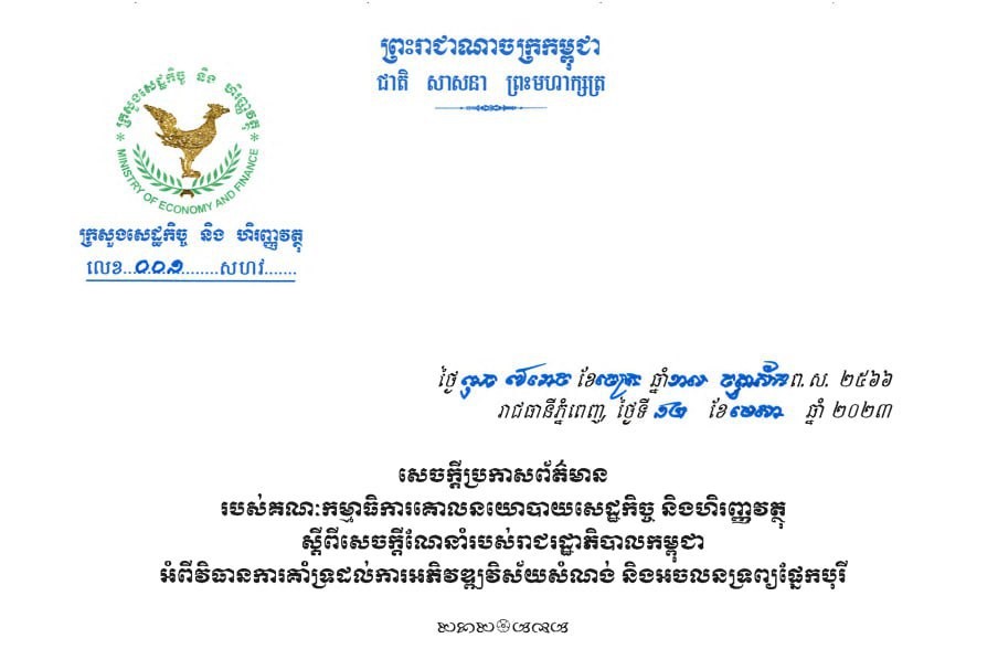 សេដ្ឋកិច្ចនិងហិរញ្ញវត្ថុ នៃក្រសួងសេដ្ឋកិច្ច និងហិរញ្ញវត្ថុ ដែលត្រូវបានផ្សព្វផ្សាយនៅថ្ងៃទី១៧ ខែមេសា បានលើកឡើងថា រាជរដ្ឋាភិបាលបន្តពន្យារពេលការអនុវត្តការបង់ពន្ធជាកញ្ចប់តាមដំណាក់កាលរហូតដល់ដំណាច់ឆ្នាំ ២០២៤ សម្រាប់ក្រុមហ៊ុនអភិវឌ្ឍន៍លំនៅឋានជាបុរីដែលបាន និងកំពុងប្រតិបត្តិការគម្រោងអភិវឌ្ឍន៍ លំនៅឋានដែលមានអាជ្ញាបណ្ណអាជីវកម្មអចលនវត្ថុ ផ្តល់ដោយនិយ័តករអាជីវកម្មអចលនវត្ថុ និងបញ្ចាំ។