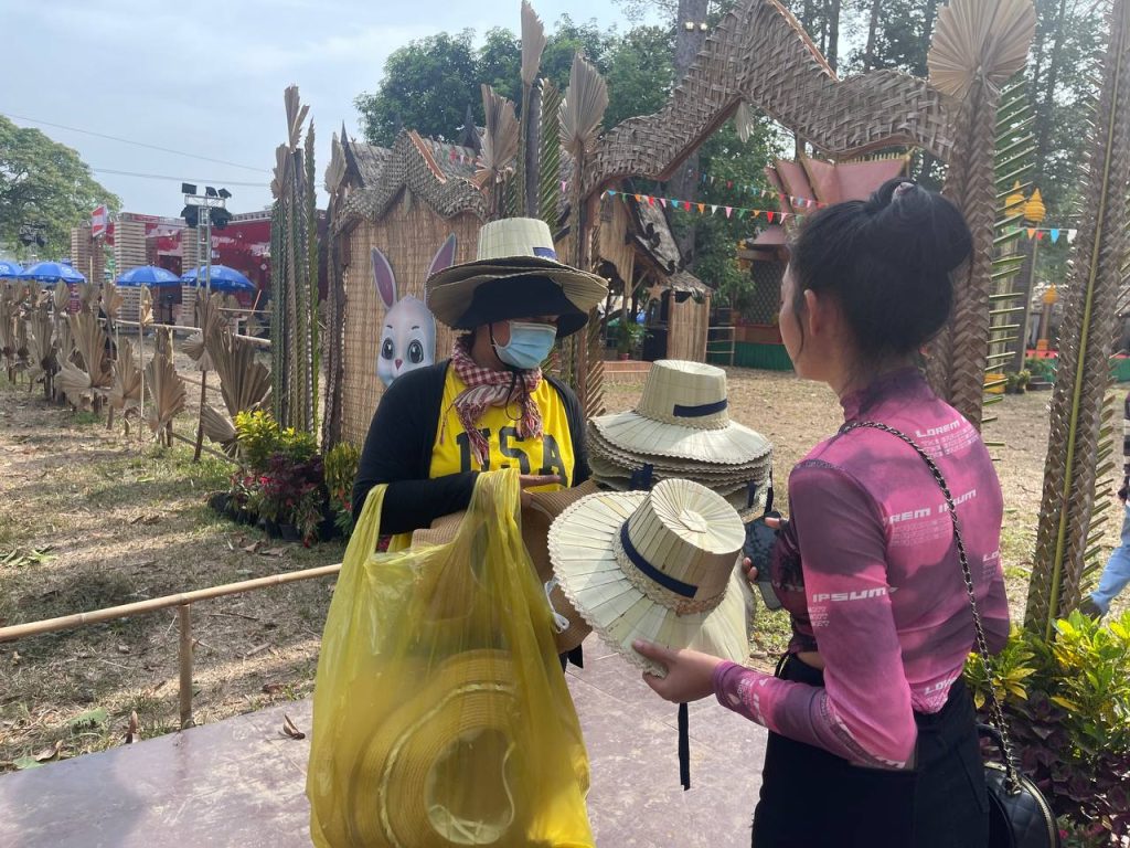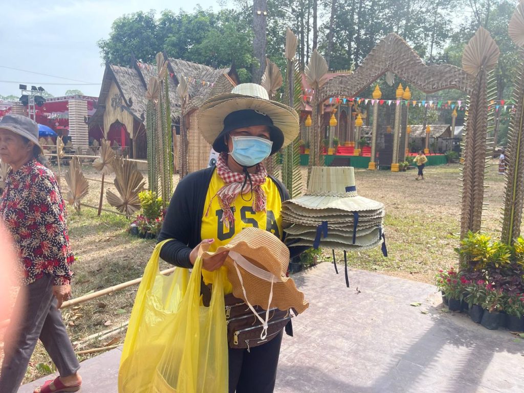 ស្រ្តីមួយរូបមានឈ្មោះ ហុង សុគាន់ ដែលកំពុងដើរលក់មួកស្លឹកត្នោតខ្មែរ នៅខាងជើងប្រាសាទបាយ័នក្នុងសង្រ្កាន្តឆ្នាំថ្មី២០២៣នេះ បានប្រាប់ឱ្យដឹងថា មានភ្ញៀវទេសចរទាំងខ្មែរ និង បរទេសចូលចិត្តទិញមួកស្លឹកត្នោតខ្មែរសម្រាប់ពាក់ណាស់ដែរ ។ ក្រុមអ្នកទេសចរពាក់មួកខ្មែរដើម្បីបង្ហាញពីផលិតផលកេរដូនតាខ្មែរ និងការស្រឡាញ់ចូលចិត្ត ធម្មជាតិ។