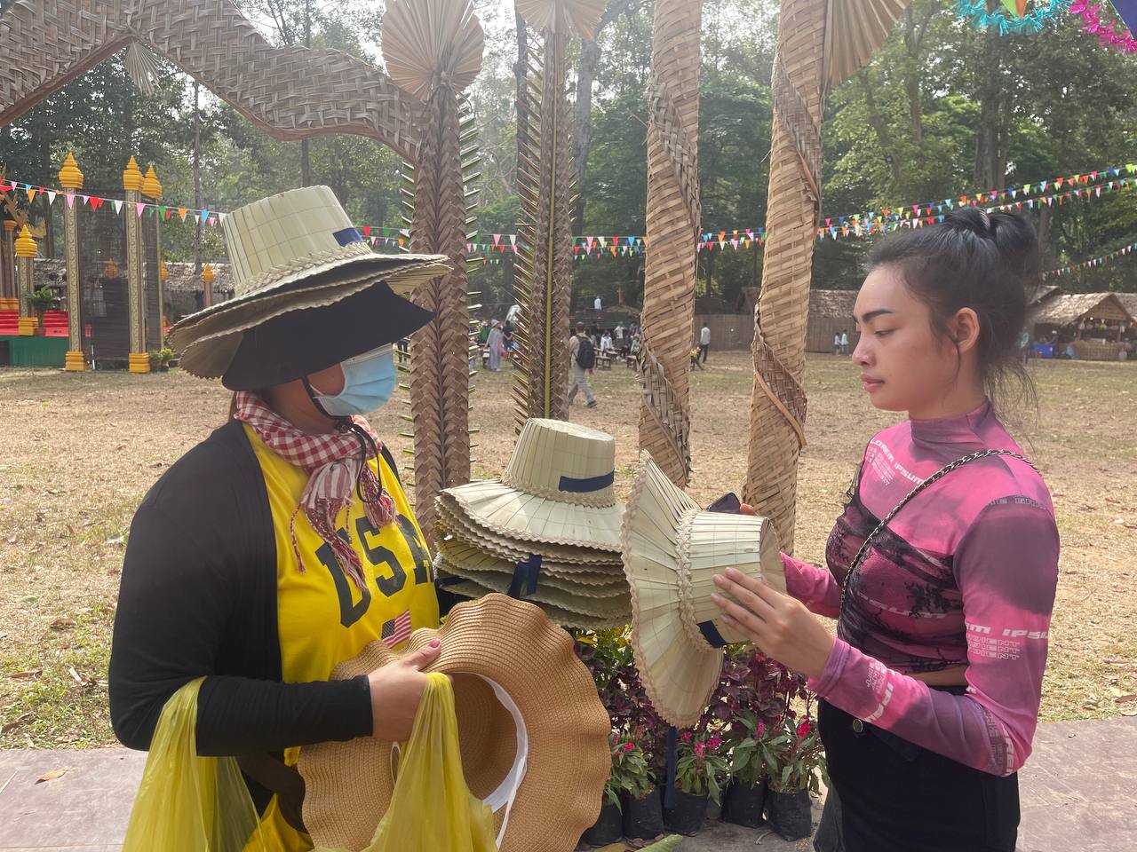 ស្រ្តីមួយរូបមានឈ្មោះ ហុង សុគាន់ ដែលកំពុងដើរលក់មួកស្លឹកត្នោតខ្មែរ នៅខាងជើងប្រាសាទបាយ័នក្នុងសង្រ្កាន្តឆ្នាំថ្មី២០២៣នេះ បានប្រាប់ឱ្យដឹងថា មានភ្ញៀវទេសចរទាំងខ្មែរ និង បរទេសចូលចិត្តទិញមួកស្លឹកត្នោតខ្មែរសម្រាប់ពាក់ណាស់ដែរ ។ ក្រុមអ្នកទេសចរពាក់មួកខ្មែរដើម្បីបង្ហាញពីផលិតផលកេរដូនតាខ្មែរ និងការស្រឡាញ់ចូលចិត្ត ធម្មជាតិ។