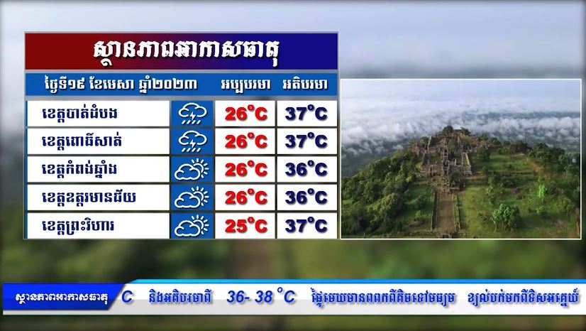 ព្យាករណ៍អាកាសធាតុ សម្រាប់ថ្ងៃទី១៩ មេសា ២០២៣ (មានវីដេអូ)