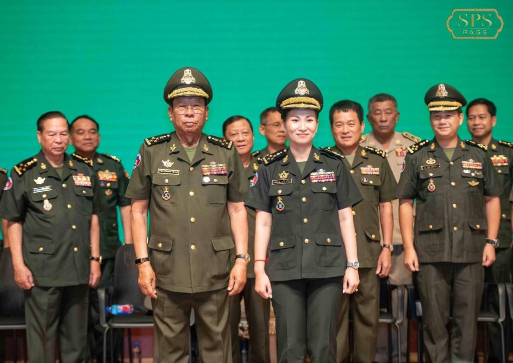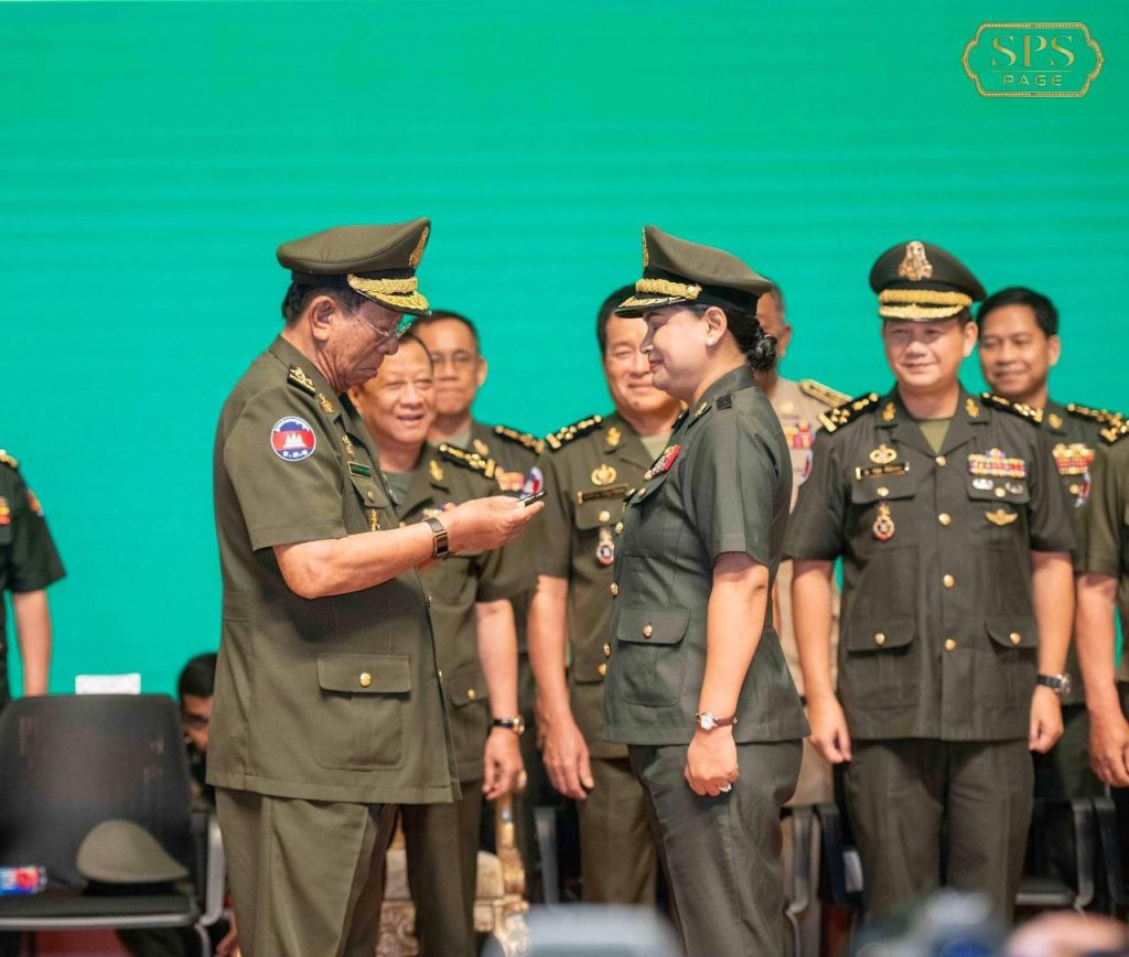 សម្តេចពិជ័យសេនា ទៀ បាញ់ ឧបនាយករដ្ឋមន្ត្រី រដ្ឋមន្ត្រីក្រសួងការពារជាតិ បានមានប្រសាសន៍ថា ក្នុងនាមរាជរដ្ឋាភិបាល ក្រសួងការពារជាតិ អគ្គបញ្ជាការ និងក្នុងនាមសម្តេចផ្ទាល់មានសោមនស្សរីករាយយ៉ាងក្រៃលែងក្នុងពិធីបំពាក់ឋានន្តរស័ក្តិថ្នាក់ឧត្តមសេនីយ៍ដល់នាយទាហាននៃកងយោធពលខេមរភូមិន្ទ។ សូមសម្តែងការអបអរសាទរយ៉ាងកក់ក្តៅក្នុងឱកាសដែលឯកឧត្តមឧត្តមសេនីយ៍ឯក ហ៊ុន ម៉ាណែត អគ្គមេបញ្ជាការរង នៃកងយោធពលខេមរភូមិន្ទ និងជាមេបញ្ជាការកងទ័ពជើងគោក លោកជំទាវ ដាំ ដារ៉ានី រដ្ឋលេខាធិការក្រសួងការពារជាតិ និងលោកជំទាវ ម៉ាលី សុជាតា អនុរដ្ឋលេខាធិការក្រសួងការពារជាតិ ត្រូវបានព្រះមហាក្សត្រត្រាស់បង្គាប់តម្លើងឋាន្តន្តរស័ក្តិនាយឧត្តមសេនីយ៍ និងប្រគល់ឋានន្តរស័ក្តិនាយឧត្តមសេនីយ៍ និងឧត្តមសេនីយ៍ឯក គឺបង្ហាញពីការខិតខំប្រឹងប្រែងបម្រើជាតិ មាតុភូមិ កងទ័ព និងប្រជាជានកម្ពុជា។