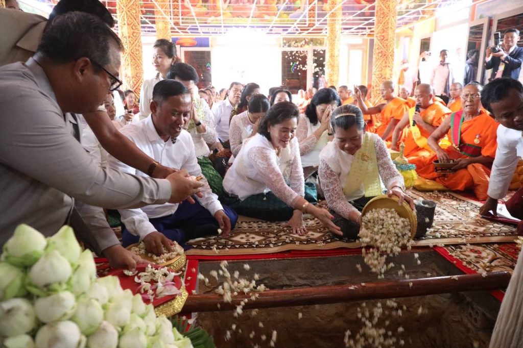 ខេត្តកំពង់ស្ពឺ ៖ សម្តេចកិត្តិសង្គហបណ្ឌិត ម៉ែន សំអន ឧបនាយករដ្ឋមន្ត្រី រដ្ឋមន្ត្រីក្រសួងទំនាក់ទំនងជាមួយរដ្ឋសភា-ព្រឹទ្ធសភា និងអធិការកិច្ចបានអញ្ជើញជាអធិបតីក្នុងពិធីបញ្ចុះខណ្ឌសីមាព្រះវិហារ និងសម្ពោធសមិទ្ធិផលនៅក្នុងវត្តស្វាយទាប ស្ថិតនៅ ឃុំស្នំក្រពើ ស្រុកគងពិសី ខេត្តកំពង់ស្ពឺ នាព្រឹកថ្ងៃទី២០ ខែមេសា ឆ្នាំ២០២៣ ។