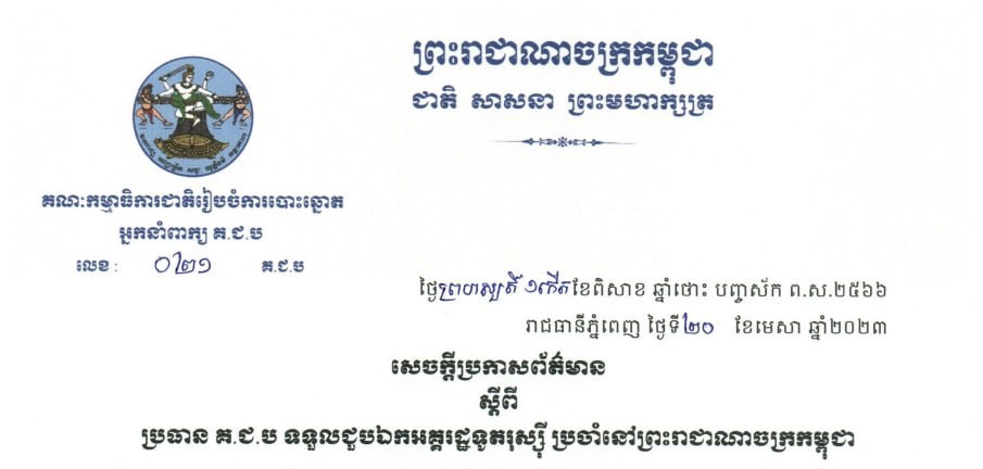 សេចក្តីប្រកាសព័ត៌មានរបស់អ្នកនាំពាក្យ គ.ជ.ប ស្តីពី ប្រធាន គ.ជ.ប ទទួលជួបឯកអគ្គរដ្ឋទូតរុស្ស៊ី ប្រចាំនៅព្រះរាជាណាចក្រកម្ពុជាOne-Minuteបោះឆ្នោតសកល ២០២៣អត្ថបទដោយ៖AMS OneMinute #ams1minute #បោះឆ្នោត២០២៣ #khelection2023 AMS OneMinuteអត្ថបទមុនអត្ថបទបន្ទាប់
