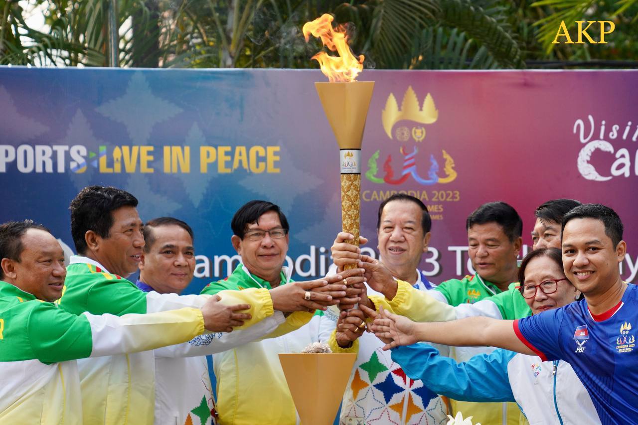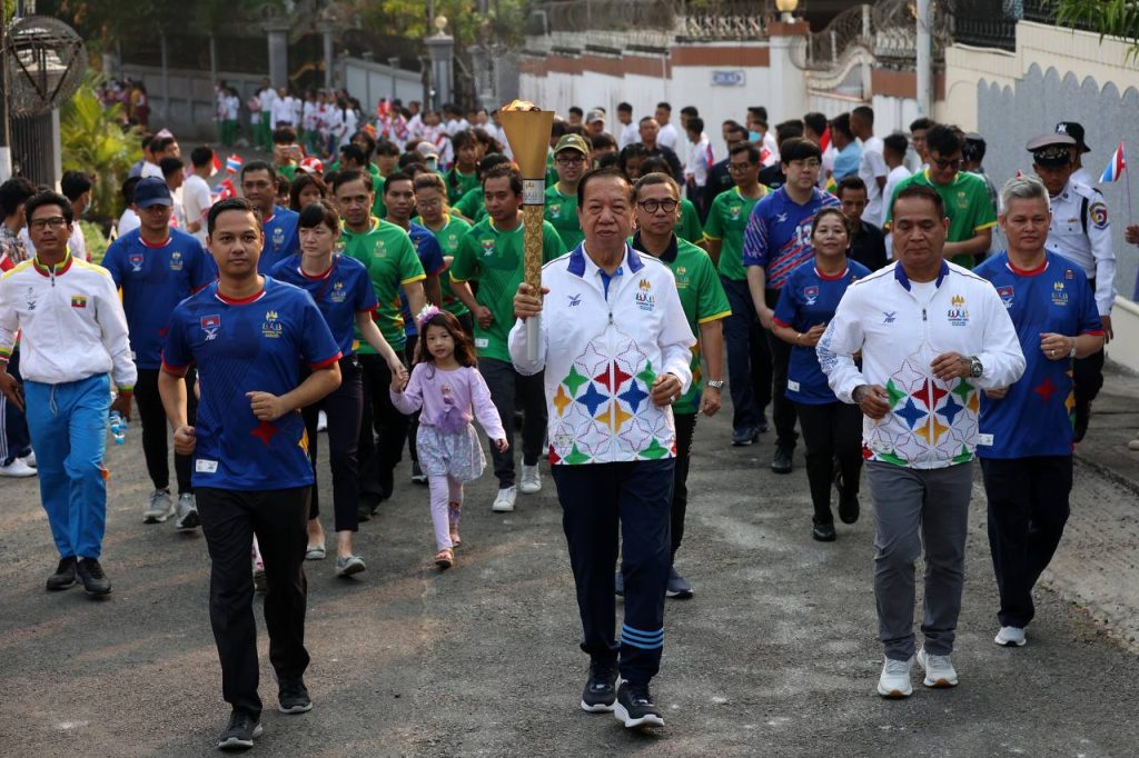 ពិធីដង្ហែនេះ ធ្វើឡើងក្រោមវត្តមានឯកឧត្តម ហោ សារុន រដ្ឋលេខាធិការក្រសួងទេសចរណ៍ និងជាបេសកជនពិសេស CAMSOC ឯកឧត្តម ជុំ អង្គវិចិត្រ ឯកអគ្គរាជទូតកម្ពុជាប្រចាំមីយ៉ាន់ម៉ា និងឯកឧត្តម Minn Thein Zan រដ្ឋមន្ដ្រីសហភាពក្រសួងកីឡា និងជាប្រធានគណៈកម្មាធិការជាតិអូឡាំពិកមីយ៉ាន់ម៉ា និងលោក Tun Myint Oo អគ្គនាយកក្រសួងកីឡា និងកិច្ចការយុវជន ថ្នាក់ដឹកនាំតំណាងក្រសួងការបរទេស និងប៉ារ៉ាហ្គេមមីយ៉ាន់ម៉ា ឯកអគ្គរដ្ឋ/រាជទូតបណ្ដាប្រទេសក្នុងតំបន់ និងក្រៅតំបន់ ថ្នាក់ដឹកនាំតំណាងគណៈកម្មាធិការប្រជាជនទីក្រុងយ៉ាំងហ្គូន ផងដែរ។ APK
