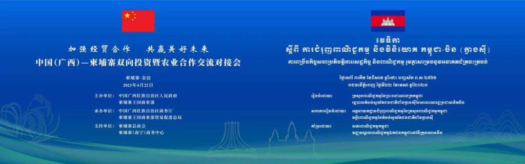 ភ្នំពេញ៖ ការពង្រឹង និងពង្រីកកិច្ចសហប្រតិបត្តិការពាណិជ្ជកម្មទ្វេភាគីរវាងកម្ពុជា និងតំបន់ស្វយ័តក្វាងស៊ី តាមរយៈវេទិកា ស្តីពី “ការជំរុញពាណិជ្ជកម្ម និងវិនិយោគកម្ពុជា-ចិន(ក្វាងស៊ី)”ត្រូវបានប្រារព្ធ ឡើងកាលពីថ្ងៃទី២២ ខែមេសា ឆ្នាំ២០២៣ ក្រោមអធិបតីភាព ឯកឧត្តម ឈួន ដារ៉ា រដ្ឋមន្ត្រីប្រតិភូអមនាយករដ្ឋមន្រ្តី និងជារដ្ឋលេខាធិការក្រសួងពាណិជ្ជកម្ម តំណាងរបស់ ឯកឧត្តម ប៉ាន សូរស័ក្តិ រដ្ឋមន្រ្តីក្រសួងពាណិជ្ជកម្ម និង ឯកឧត្តម ឡាន ធានលី អភិបាលតំបន់ស្វយ័តជនជាតិជាំង ក្វាងស៊ី នៃសាធារណរដ្ឋប្រជាមានិតចិន ។