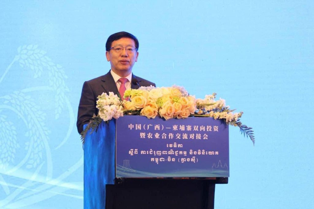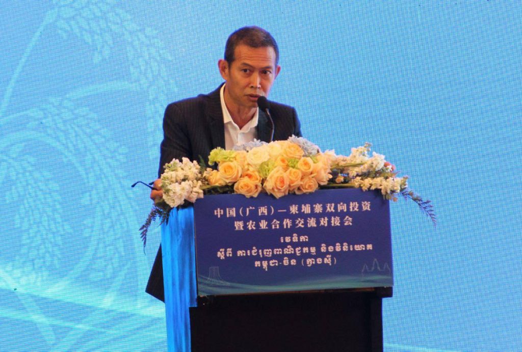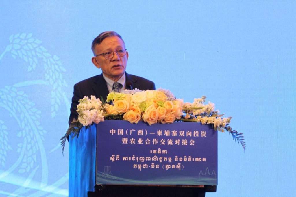 ឯកឧត្តម បានបញ្ជាក់ជូនសហគ្រាស-ក្រុមហ៊ុនចិនពីខេត្តក្វាងស៊ីដែលអញ្ជើញមកទស្សកិច្ចនៅព្រះរាជាណាចក្រកម្ពុជានាពេលនេះ សូមធ្វើការបណ្តាក់ទុន និងវិនិយោគនៅប្រទេសកម្ពុជា លើការផលិត និងកែច្នែផលិតផលកសិកម្ម ដែលកម្ពុជាមានទីផ្សារនាំចេញទៅសហភាពអឺរ៉ុប បណ្តាប្រទេសនៅក្នុងតំបន់ និងលើពិភពលោក។
