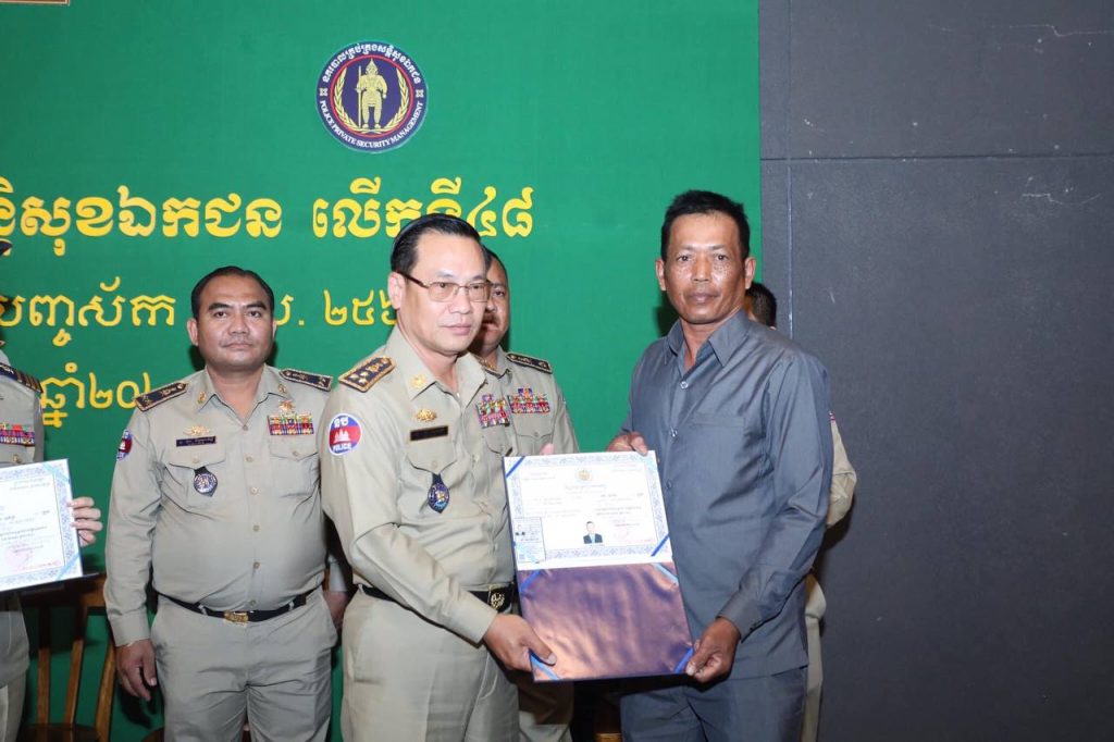 ភ្នំពេញ ៖ ឯកឧត្តម ឧត្តមសេនីយ៍ឯក អ៊ី សុខឃី អគ្គស្នងការរងនគរបាលជាតិ បានធ្វើការវាយតម្លៃខ្ពស់ និងកោតសរសើរចំពោះភ្នាក់ងារសន្ដិសុខឯកជនទាំងអស់ ដែលបានចូលរួមជាកម្លាំងជំនួយនៅគ្រប់កាលៈទេសៈ ជាមួយអគ្គស្នងការដ្ឋាននគរបាលជាតិ បន្ថែមពីអ្វីដែលជាតួនាទីភារកិច្ចរបស់ខ្លួន តាមសំណូមពររបស់អគ្គស្នងការដ្ឋាននគរបាលជាតិ ពិសេសនាយកដ្ឋានគ្រប់គ្រងសន្ដិសុខឯកជន។