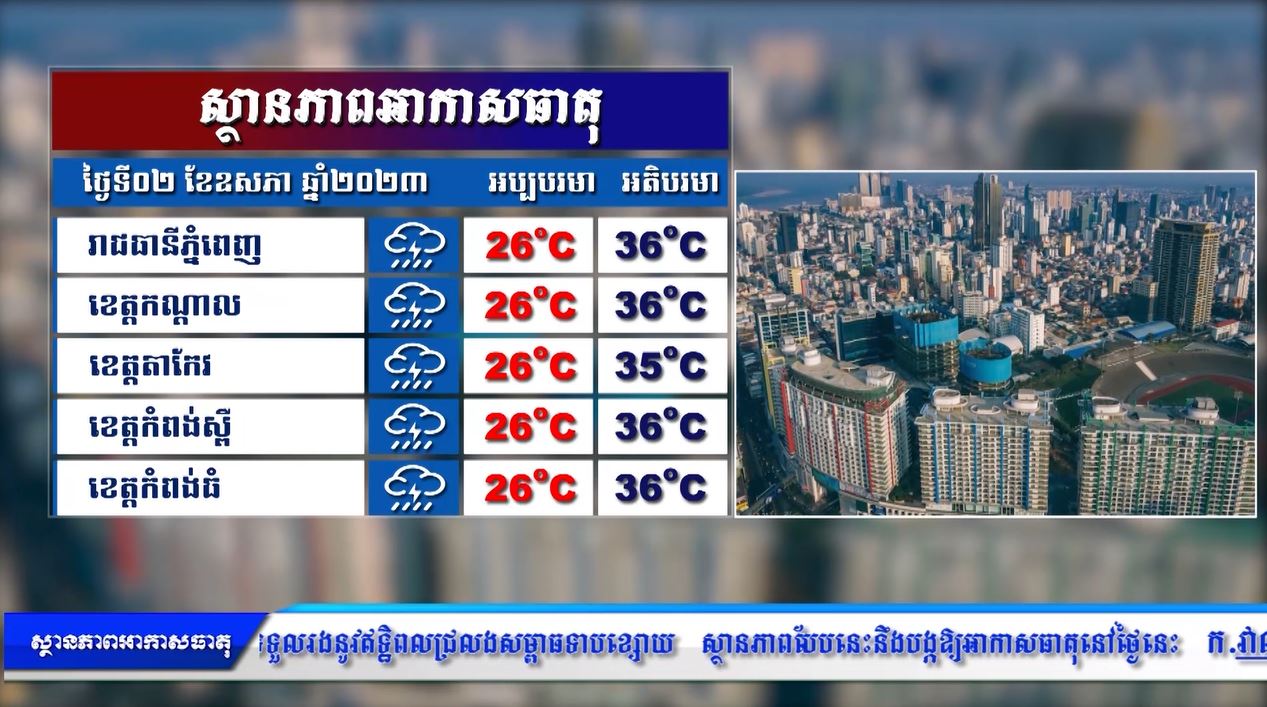 ព្យាករណ៍អាកាសធាតុ សម្រាប់ថ្ងៃទី០២ ឧសភា ២០២៣ (មានវីដេអូ)