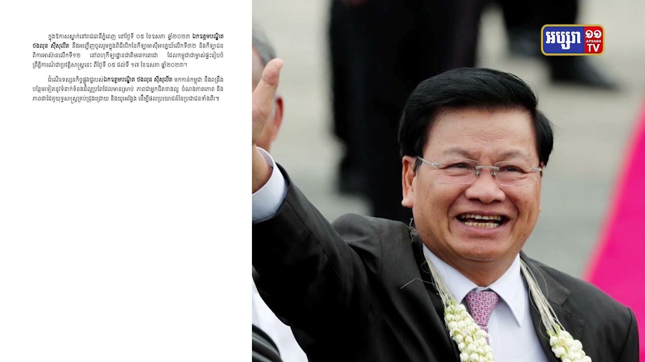 ប្រធានរដ្ឋ នៃប្រទេសឡាវ គ្រោងបំពេញទស្សនកិច្ច៣ថ្ងៃ ក្នុងប្រទេសកម្ពុជា (Video Inside)