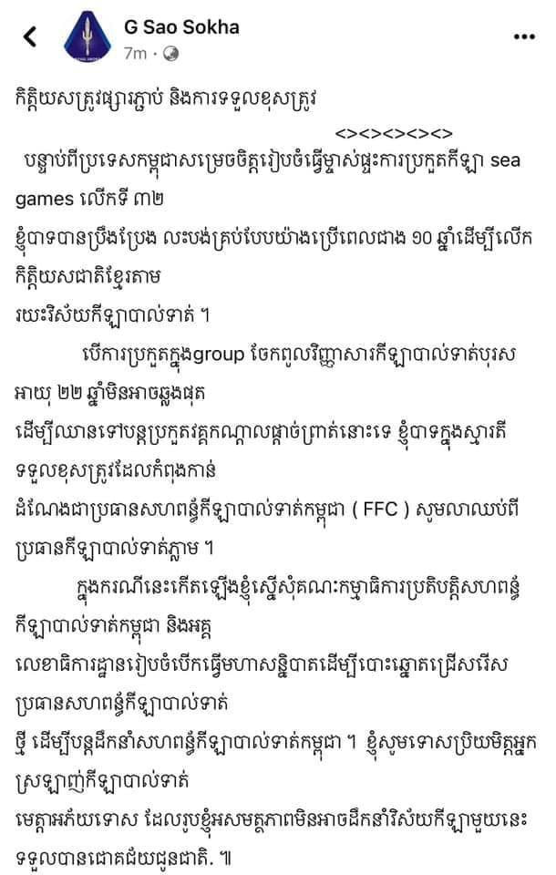 នាយឧត្តមសេនីយ៍ សៅ សុខា ប្រកាសចុះចេញពីតំណែងប្រធានសហព័ន្ធបាល់ទាត់ បើU22 របស់កម្ពុជាឆ្លងមិនផុតវគ្គចែកពូលOne-Minuteអត្ថបទដោយ៖AMS OneMinute #ams1minute AMS OneMinuteអត្ថបទមុនអត្ថបទបន្ទាប់