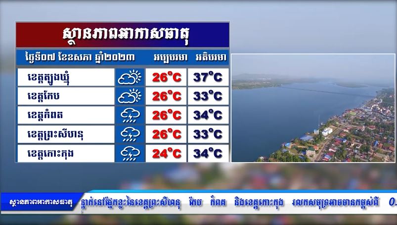 ព្យាករណ៍អាកាសធាតុ សម្រាប់ថ្ងៃទី០៨ ឧសភា ២០២៣ (មានវីដេអូ)