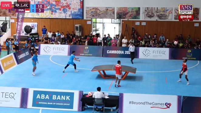 AMS Sports ផ្សាយផ្ទាល់ពិសេស 32nd SEA Games ៖ កីឡាបាល់លើតុ ( TEQBALL ) ពីសាលកីឡានៃអគារខេមរានី