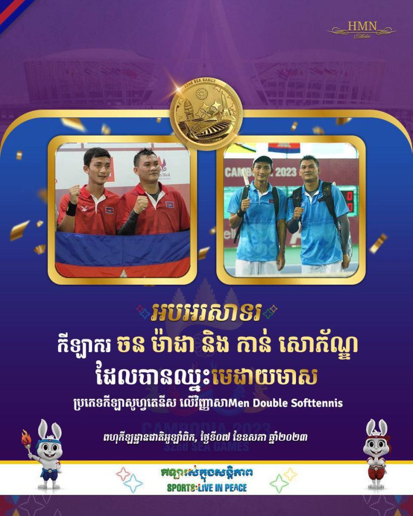 សូមអបអរសាទរ កីឡាករ ចន ម៉ាដា និងកីឡាករ កាន់ សោភ័ណ្ឌ ទទួលបានមេដាយមាស🥇