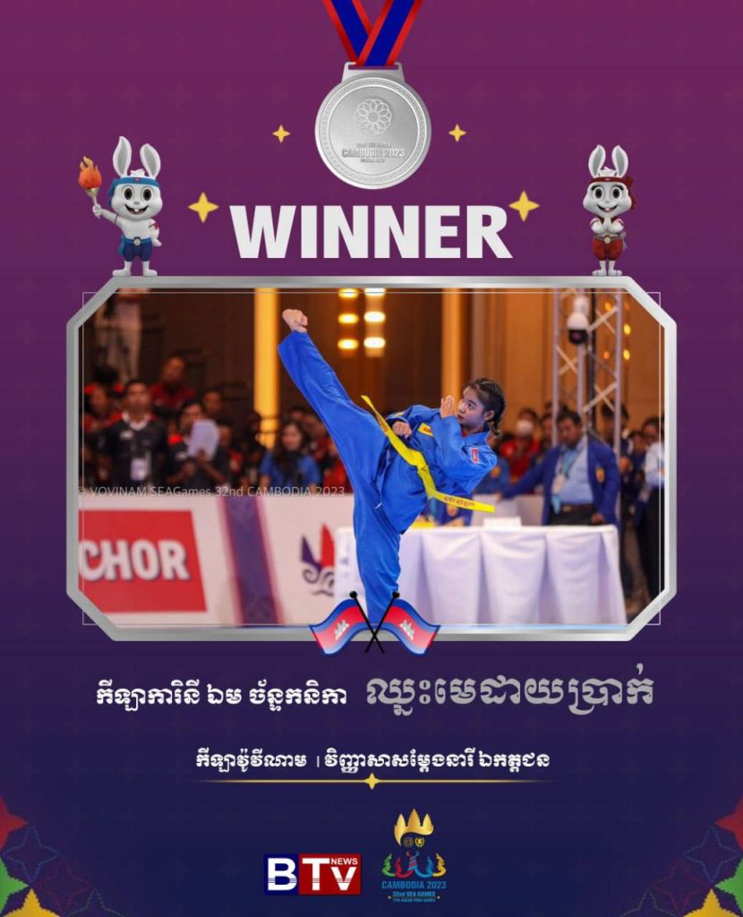 សូមអបអរសាទរ កីឡាការិនីកីឡាវ៉ូវីណាមកម្ពុជា ឯម ច័ន្ទកនិកា ទទួលបានមេដាយប្រាក់ 🥈