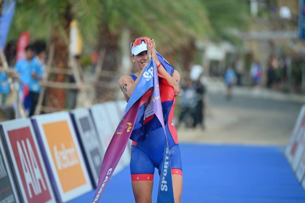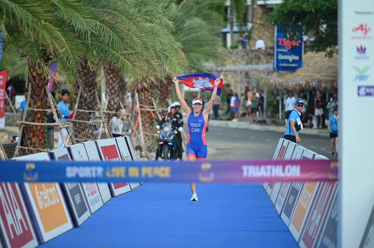 អបអរសាទរកីឡាការិនីទ្រីយ៉ាថ្លុងកម្ពុជា ម៉ហ្គត មរកត ហ្គារ៉ាប៊ីឌៀន បានឈ្នះមេដាយមាសលើវិញ្ញាសា ទ្រីយ៉ាត្លុង (ហែលទឹក៧៥០ម៉ែត្រ ជិះកង់ ២០គីឡូម៉ែត្រ និងរត់៥គីឡូម៉ែត្រ ) ដែលប្រារព្ធធ្វើនៅខេត្តកែប នៅព្រឹកថ្ងៃទី០៨ ឧសភា ២០២៣