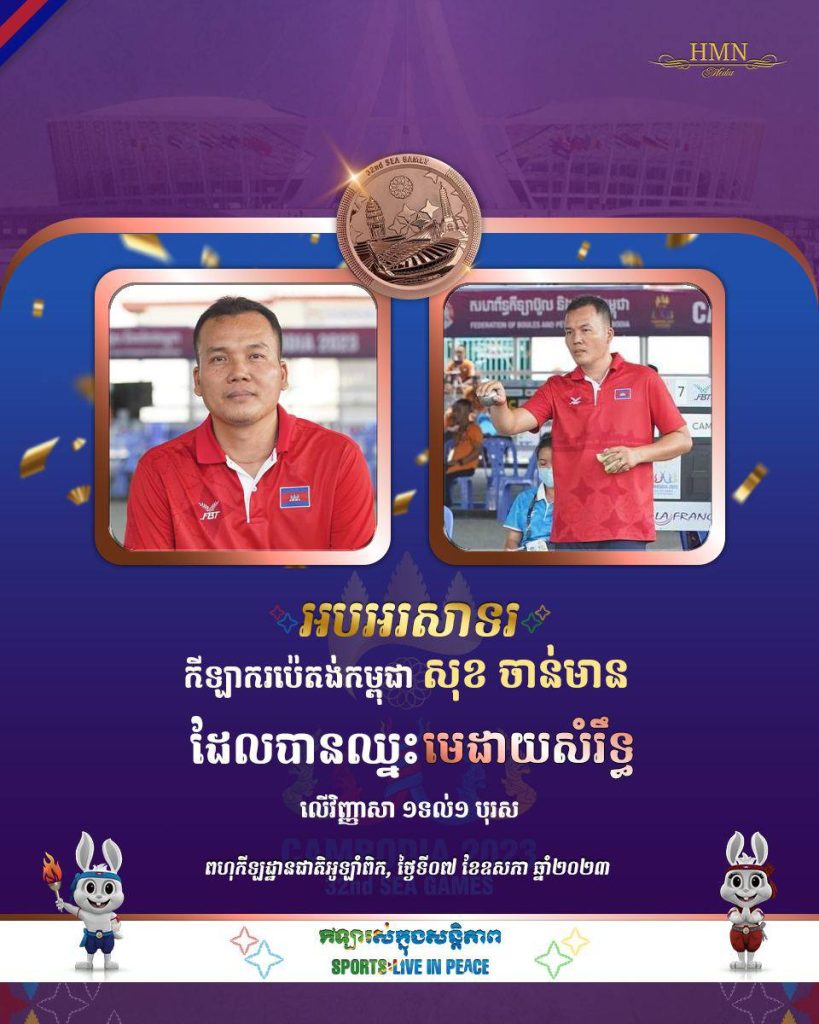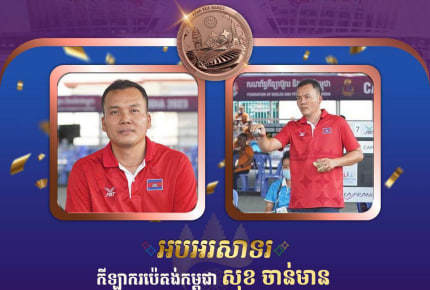 អបអរសាទរកីឡាករប៉េតង់កម្ពុជា សុខ ចាន់មាន ដែលបានឈ្នះមេដាយសំរឹទ្ធ លើវិញ្ញាសា ១ទល់១ បុរសOne-Minuteអត្ថបទដោយ៖AMS OneMinute #ams1minute AMS OneMinuteអត្ថបទមុនអត្ថបទបន្ទាប់