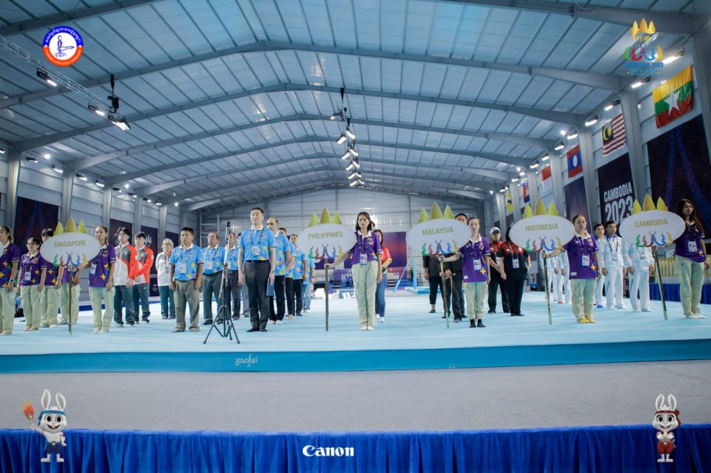 ការប្រកួតកីឡា កាយសម្ព័ន្ធ នៃ ព្រឹត្តិការណ៍ស៊ីហ្គេម លើកទី៣២ ឆ្នាំ២០២៣ នៅកម្ពុជា ដែលចាប់ផ្ដើម នៅព្រឹក ថ្ងៃទី៨ ខែឧសភា ក្នុងពហុកីឡាដ្ឋានជាតិនោះ ធ្វើឡើង ក្រោមវត្តមាន ឯកឧត្តមបណ្ឌិត ថោង ខុន ប្រធានសហព័ន្ធកីឡាកាយសម្ព័ន្ធកម្ពុជា ដោយមានអត្តពលិកមកពី៧ប្រទេស ចូលរួម ។