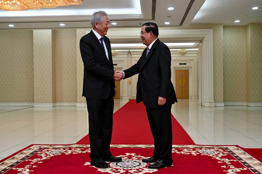 ភ្នំពេញ៖ ក្នុងឱកាសអនុញ្ញាតឱ្យឯកឧត្តម ធាវ ឈីហាន ( Teo Chee Hean ) ទេសរដ្ឋមន្ដ្រី រដ្ឋមន្ដ្រីសម្របសម្រួលសន្ដិសុខជាតិសិង្ហបុរី ចូលជួបសម្ដែងការគួរសម និងពិភាក្សាការងារ នៅវិមានសន្តិភាព នៅព្រឹកថ្ងៃទី០៨ ខែឧសភា ឆ្នាំ២០២៣ លើកទឹកចិត្តឱ្យភាគីទាំងពីរ កម្ពុជា-សិង្ហបុរី សម្ដេចអគ្គមហាសេនាបតីតេជោ ហ៊ុន សែន នាយករដ្ឋមន្ដ្រី នៃព្រះរាជាណាចក្រកម្ពុជា បានវាយតម្លៃខ្ពស់ចំពោះកិច្ចប្រតិបត្តិដែលមានស្រាប់រវាងប្រទេសទាំងពីរ ជំរុញឱ្យភាគីទាំង២ ការអនុវត្តលើកិច្ចព្រមព្រៀងអនុស្សាណៈដែលបានចុះហត្ថលេខារួចហើយ ជាពិសេស លើវិស័យថាមពល និងវិស័យទីផ្សារកំបោនជាមួយគ្នា ។ សម្តេចតេជោ នាយករដ្ឋមន្ត្រី ក៏បានលើកទឹកចិត្តឱ្យពិនិត្យលទ្ធភាព លើកិច្ចសហប្រតិបត្តិការក្នុងវិស័យដ៍ទៃទៀត ដែលអាចធ្វើទៅបាន ។