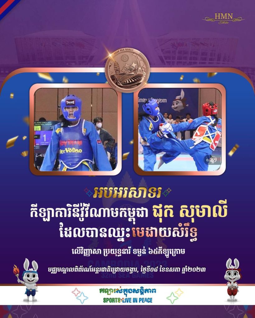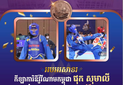 អបអរសាទរកីឡាការិនីវ៉ូវីណាមកម្ពុជា ជុក សុមាលី ដែលបានឈ្នះមេដាយសំរឹទ្ធ លើវិញ្ញាសា ប្រយុទ្ធនារី ទម្ងន់ ៦៥កីឡូក្រោមOne-Minuteអត្ថបទដោយ៖AMS OneMinute #ams1minute AMS OneMinuteអត្ថបទមុនអត្ថបទបន្ទាប់