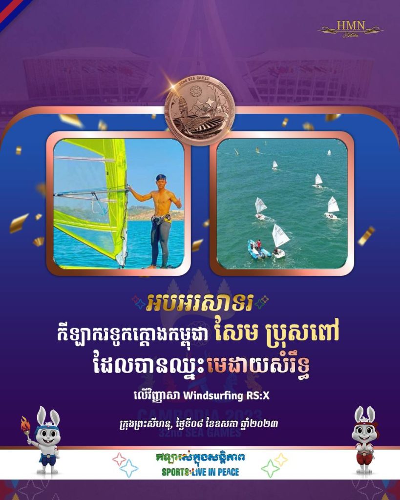 អបអរសាទរកីឡាករទូកក្តោងកម្ពុជា សែម ប្រុសពៅ ដែលបានឈ្នះមេដាយសំរឹទ្ធ លើវិញ្ញាសា Windsurfing RS:XOne-Minuteអត្ថបទដោយ៖AMS OneMinute #ams1minute AMS OneMinuteអត្ថបទមុនអត្ថបទបន្ទាប់