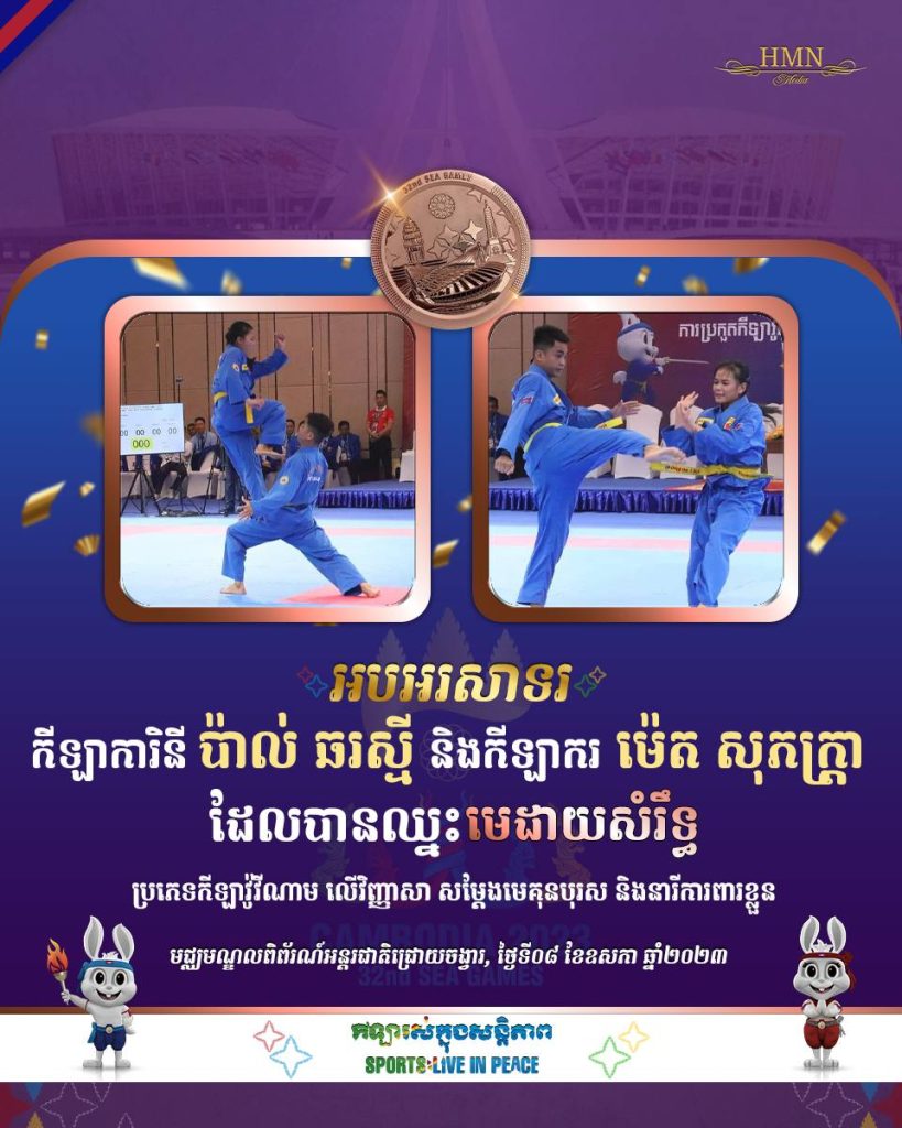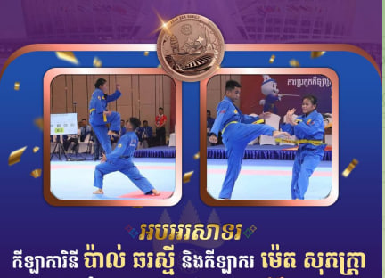 អបអរសាទរកីឡាការិនី ប៉ាល់ ឆរស្មី និងកីឡាករ ម៉េត សុភក្រ្តា ដែលបានឈ្នះមេដាយសំរឹទ្ធ ប្រភេទកីឡាវ៉ូវីណាម លើវិញ្ញាសា សម្តែងមេគុនបុរស និងនារីការពារខ្លួនOne-Minuteអត្ថបទដោយ៖AMS OneMinute #ams1minute AMS OneMinuteអត្ថបទមុនអត្ថបទបន្ទាប់
