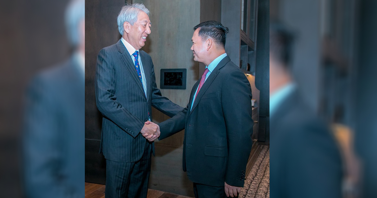 ឯកឧត្តមបណ្ឌិត ហ៊ុន ម៉ាណែត ទទួលជួបសំណេះសំណាលជាមួយរដ្ឋមន្ត្រីទទួលបន្ទុកសម្របសម្រួលសន្តិសុខជាតិសិង្ហបុរី