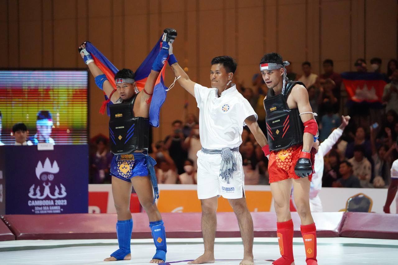 កីឡាករកម្ពុជា ចុន ចិត្ត បានឈ្នះមេដាយមាស លើប្រភេទកីឡាគុនល្បុក្កតោ វិញ្ញាសាប្រយុទ្ធបុរស ទម្ងន់ ៦០គីឡូក្រាម ដោយបានយកឈ្នះកីឡាករឥណ្ឌូនេស៊ី ការប្រកួតធ្វើឡើងនៅមជ្ឈមណ្ឌលពិព័រណ៍អន្តរជាតិជ្រោយចង្វារ (OCIC), ថ្ងៃទី០៨ ខែឧសភា ឆ្នាំ២០២៣៕ ចាន់ វិចិត្រ