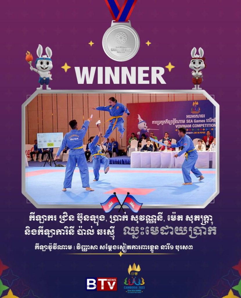 សូមអបអរសាទរ កីឡាករ ជ្រិន ប៊ុនឡុង, ប្រាក់ សុវណ្ណនី ម៉េត សុភក្រ្តា និងកីឡាការិនី ប៉ាល់ ឆរស្ម៊ី ទទួលបានមេដាយប្រាក់ 🥈