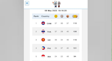 គិតត្រឹមម៉ោង៧៖១៦នាទីយប់ថ្ងៃនេះ កម្ពុជា ទទួលមេដាយសរុប ១១០គ្រឿង ក្នុងនោះមាសចំនួន៣៧, ប្រាក់ចំនួន៣៦ និងសំរិទ្ធចំនួ ន៣៧One-Minuteអត្ថបទដោយ៖AMS OneMinute #ams1minute AMS OneMinuteអត្ថបទមុនអត្ថបទបន្ទាប់