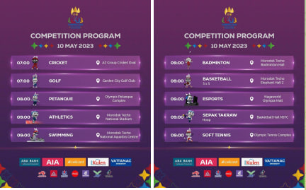 កម្មវិធីប្រកួតសម្រាប់ថ្ងៃទី១០ ឧសភា ២០២៣ នៃព្រឹត្តិការណ៍កីឡាអាស៊ីអាគ្នេយ៍ លើកទី៣២ មានចំនួន ២១ប្រភេទកីឡាOne-Minuteអត្ថបទដោយ៖AMS OneMinute សម្រាប់កម្មវិធីលម្អិត សូមចូលទៅកាន់វិបសាយរបស់យើង : https://games.cambodia2023.com/ #ams1minute AMS OneMinuteអត្ថបទមុនអត្ថបទបន្ទាប់