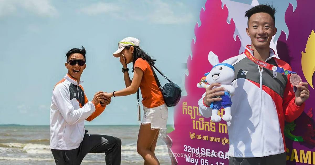 កីឡាករសាទ្រីយ៉ាត្លុងសឹង្ហបុរី Bryce Chong ឈ្នះមេដាយសំរឹទ្ធ🥉 នៅប្រទេសកម្ពុជា បានសុំមិត្តស្រីដែលទាក់ទងគ្នាជាច្រើនឆ្នាំរៀបការនៅឯឆ្នេរកែប។