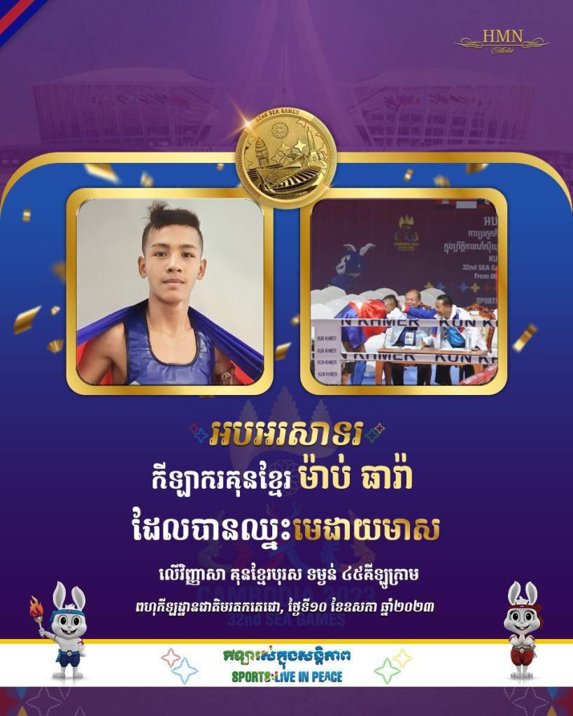 សូមអបអរសាទរ កីឡាករគុនខ្មែរ ម៉ាប់ ធារ៉ា ទទួលបានមេដាយមាស 🥇One-Minuteអត្ថបទដោយ៖AMS OneMinute លើវិញ្ញាសា គុនខ្មែរបុរស ទម្ងន់ ៤៥គីឡូក្រាម 💐🇰🇭 #ams1minute AMS OneMinuteអត្ថបទមុនអត្ថបទបន្ទាប់