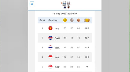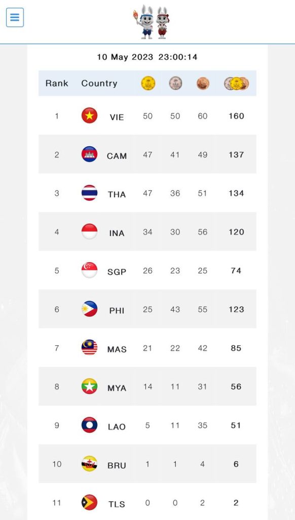 គិតត្រឹមម៉ោង១១៖០០នាទីយប់នេះ កម្ពុជា ទទួលបានមេដាយសរុប ១៣៧គ្រឿង ក្នុងនោះមាសចំនួន៤៧, ប្រាក់ចំនួន៤១ និងសំរិទ្ធចំនួន៤៩One-Minuteអត្ថបទដោយ៖AMS OneMinute #ams1minute AMS OneMinuteអត្ថបទមុនអត្ថបទបន្ទាប់
