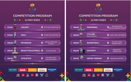 កម្មវិធីប្រកួតសម្រាប់ថ្ងៃទី១១ ឧសភា ២០២៣ នៃព្រឹត្តិការណ៍កីឡាអាស៊ីអាគ្នេយ៍ លើកទី៣២ ដែលមានចំនួន ២២ប្រភេទកីឡាOne-Minuteអត្ថបទដោយ៖AMS OneMinute សម្រាប់កម្មវិធីលម្អិត សូមចូលទៅកាន់វិបសាយរបស់យើង : https://games.cambodia2023.com/ #ams1minute AMS OneMinuteអត្ថបទមុនអត្ថបទបន្ទាប់