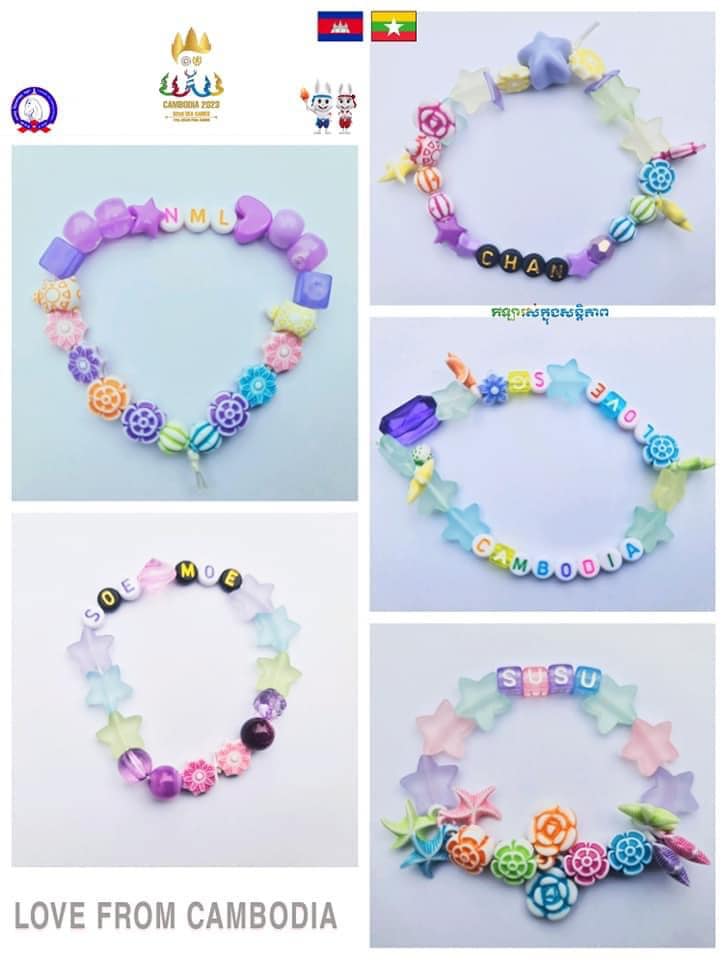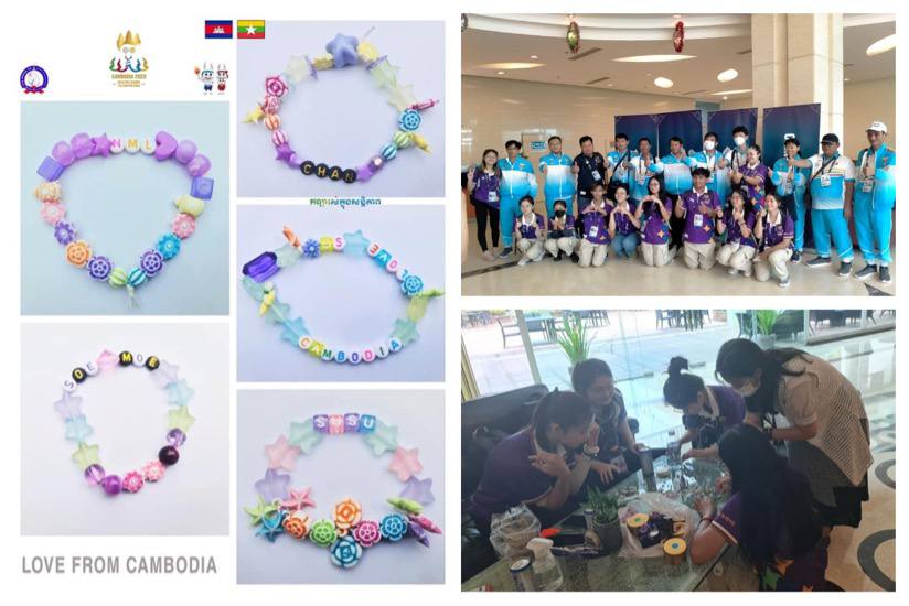 ខ្សែដៃអនុស្សាវរីយ៍ពីក្រុមយុវជនស្ម័គ្រចិត្ត ធ្វើដោយផ្ទាល់ដៃជូនអត្តពលិកអុកចត្រង្គប្រទេសមីយ៉ាន់ម៉ា ជាកាដូអនុស្សាវរីយ៍ ថ្ងៃត្រឡប់ទៅវិញ។ 🇰🇭🤝🇲🇲