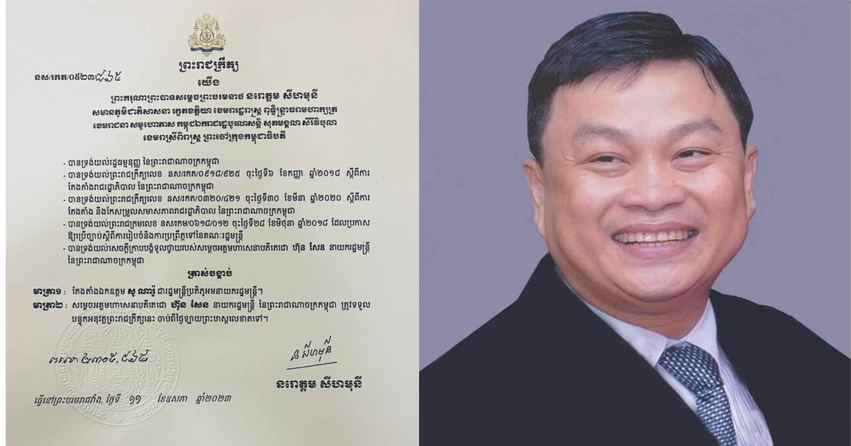 ព្រះមហាក្សត្រចេញព្រះរាជក្រឹត្យត្រាស់បង្គាប់តែងតាំងឯកឧត្តម សូ ណារ៉ូ ជារដ្ឋមន្ត្រីប្រតិភូអមនាយករដ្ឋមន្ត្រី