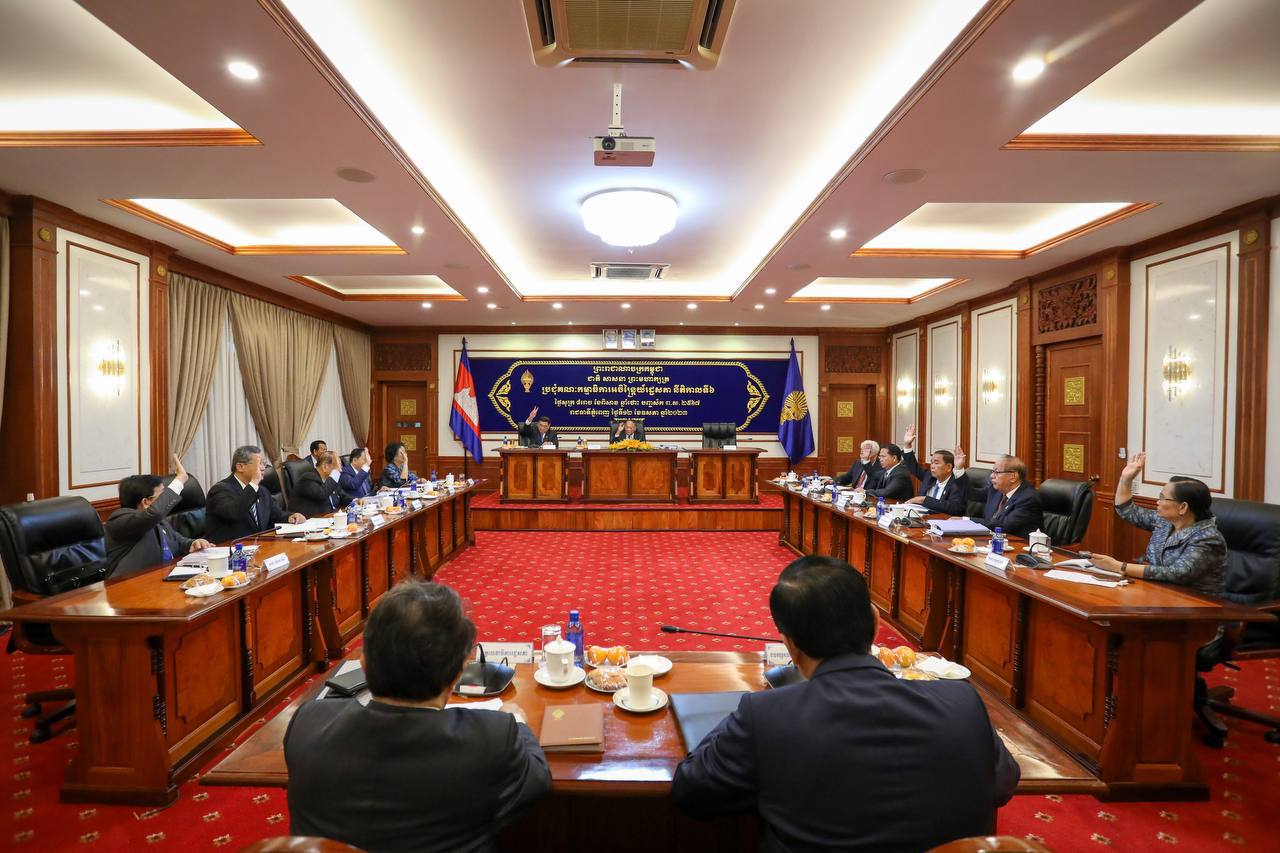 ភ្នំពេញ៖ សម្តេចអគ្គមហាពញាចក្រី ហេង សំរិន ប្រធានរដ្ឋសភា បានដឹកនាំកិច្ចប្រជុំគណៈកម្មាធិការអចិន្រ្តៃយ៍រដ្ឋសភា នៅវិមានរដ្ឋសភា នៅព្រឹកថ្ងៃសុក្រ ទី១២ ខែឧសភា ឆ្នាំ២០២៣ ដើម្បីអនុម័តលើសំណើរបស់រាជរដ្ឋាភិបាល ដែលបានស្នើសុំរដ្ឋសភាពិភាក្សានិងអនុម័តសេចក្តីព្រាងច្បាប់ចំនួនពីរ គឺសេចក្តីព្រាងក្រមបរិស្ថាននិងធនធានធម្មជាតិ និងសេចក្តីព្រាងច្បាប់ស្តីពីការអនុម័តយល់ព្រមលើកិច្ចព្រមព្រៀងពាណិជ្ជកម្មអាស៊ាន។